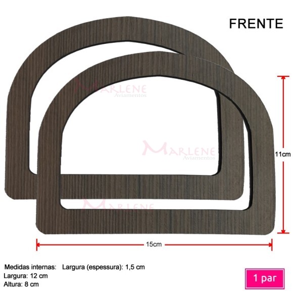 Detalhes: Alça mdf meia argola "M"(15x11cm) forrada em cetim e mdf laminado 1 par