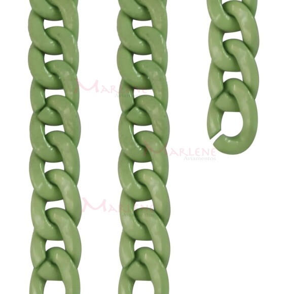 Corrente plástica elo 23X17mm verde 9650 com aproximidamente 80 elos no metro
